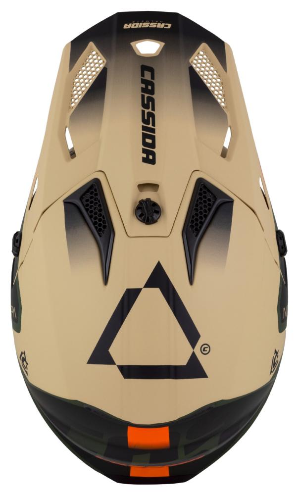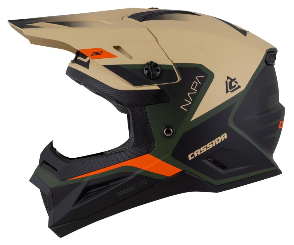 Detská motokrosová prilba CASSIDA CROSS CUP 2 NAPA, piesková - zelená oranžová