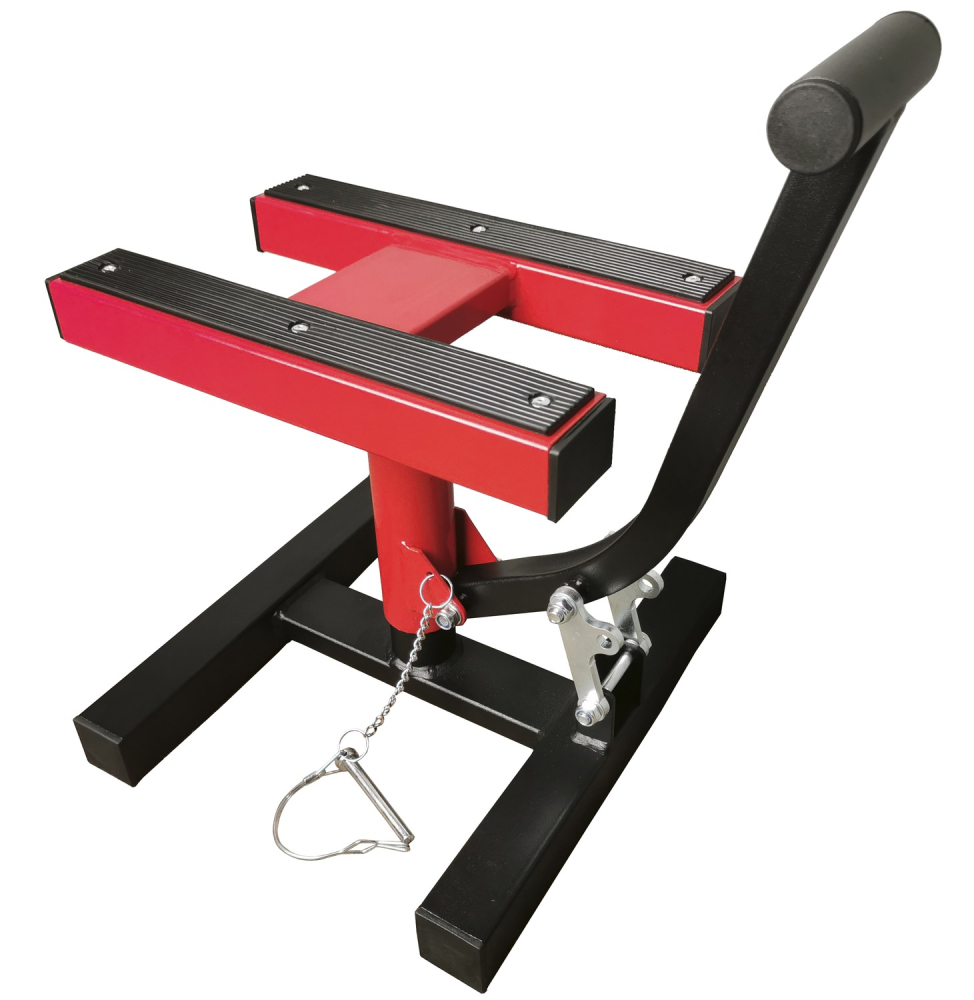 Stojan MX motokrosový od renomovanej značky Q-TECH predstavuje kvalitný a praktický doplnok, ktorý by nemal chýbať v žiadnom servise ani garáži vášnivého motokrosového jazdca či enduro nadšenca. Tento stojan je špeciálne navrhnutý tak, aby poskytoval maximálnu stabilitu a bezpečnosť pri manipulácii s motocyklom počas údržby, počas opráv alebo dlhodobého skladovania.