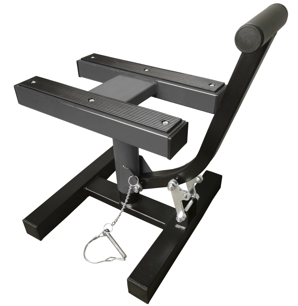 Jeho robustná konštrukcia zabezpečuje, že motorka zostane pevne na mieste, čím sa predchádza riziku poškodenia alebo pádu, čo je obzvlášť dôležité v prostredí servisu. Vďaka svojej kompaktnosti a nízkej hmotnosti je jednoduchý na prenášanie a skladovanie a samozrejme aj jednoduchú manipuĺáciu v depe.